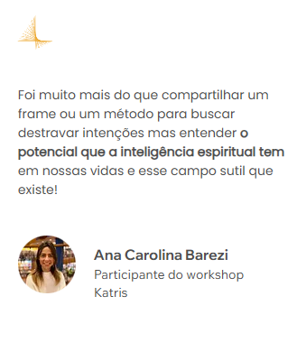 Foi uma experiência esclarecedora, acessei informações sobre mim mesma que não havia acessado em anos de aprofundamento no meu autoconhecimento. Hoje tenho ferramentas novas para lidar com os desafios do dia a dia e me sinto mais confiante sobre as minhas escolhas. A condução foi excelente. Aprender sobre inteligência espiritual foi um divisor de águas, obrigada Katris!